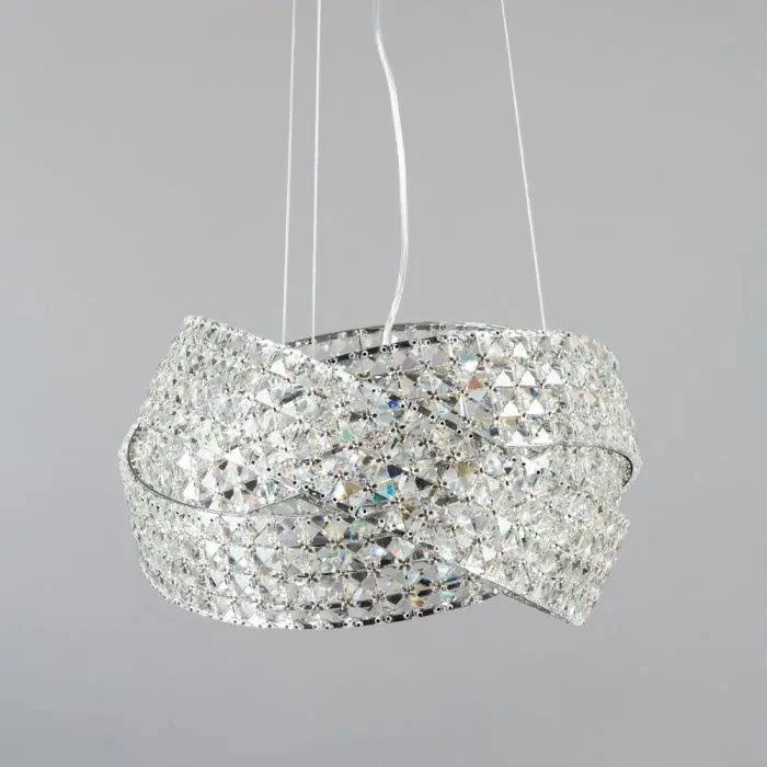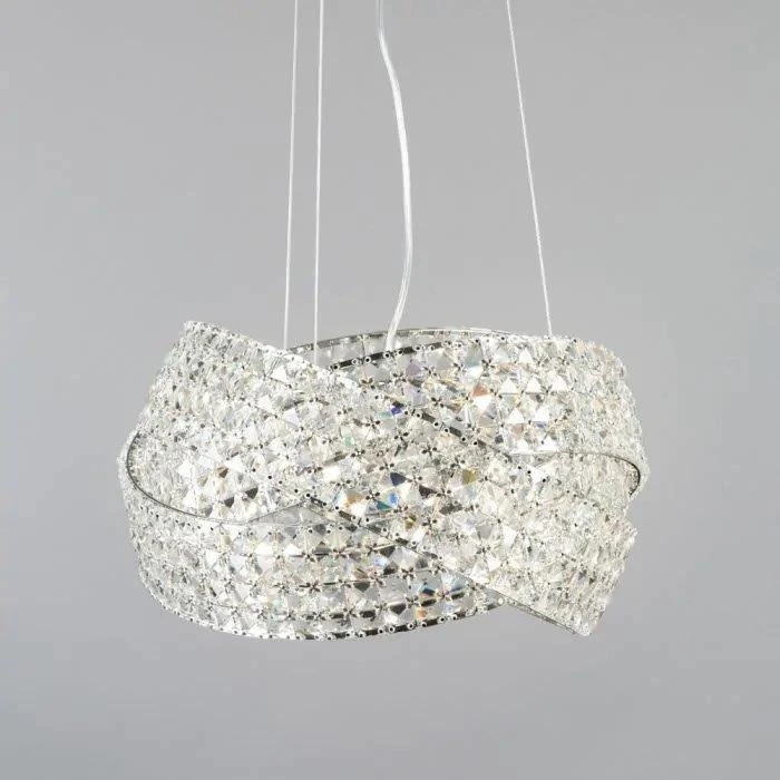 The Cypress Small Crystal Rings Ceiling Pendant is finished in a stylish chrome and covered in crystal effect beads which allows it to shine bright in your room, making it an elegant centrepiece.