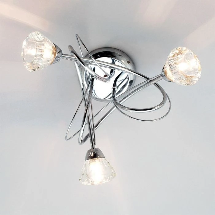 Styles like this Marianne 3 light are perfect for give a stunning effect to a small space, giving a gorgeous style without the need for high ceilings. This sophisticated Marianne 3 light features 3 intertwining arms, which each reveal a single light that is surrounded by a thick cut glass shade for soft, atmospheric diffusion as the light shines out across the room – perfect for creating a relaxed tone in your home!