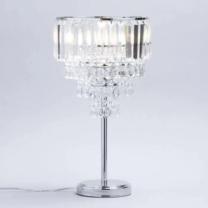 The Paladina Table Lamps Light, beautifully finished in chrome. The stylish base is enriched in crystal effect prisms for a contemporary statement within your home. These lights are perfect for warming up your room. Youll feel super cosy with this radiating yet soft glow.