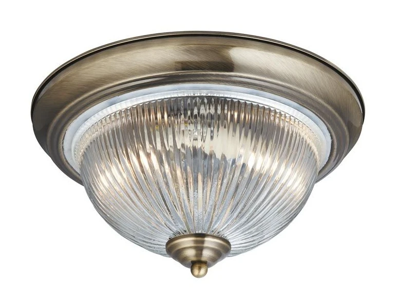 This American Diner antique brass flush light looks beautiful on any ceiling, with simplicity and style inspired by the era of the classic American Diner.
